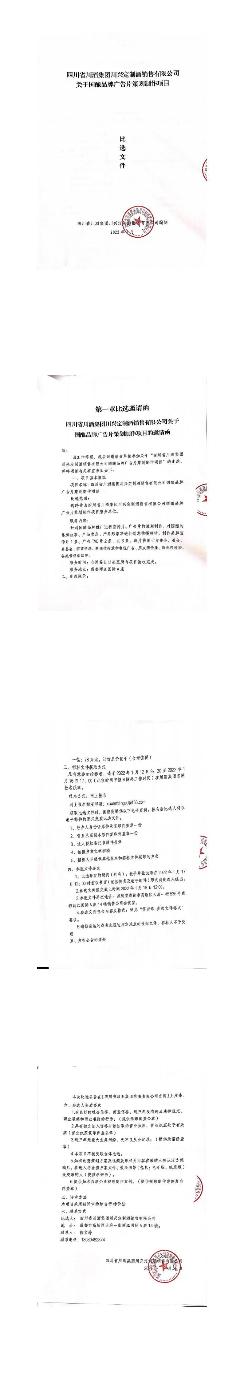 四川省川酒集团川兴定制酒销售有限公司关于国酿品牌广告片策划制作项目比选公示