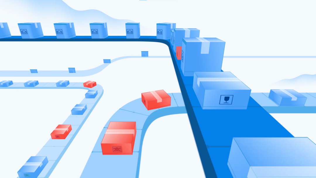 开场时,传送带上一个个不同类型、大小不一、间隔紧密的货物,随着问题的抛出,直接将观看者带进了:如何能在安全和效率、成本和性能之间找到平衡点,的思考中。