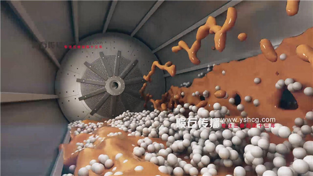 此三维动画主要展示了氧化铝球石是间歇式与连续式球磨机的研磨介质,通过球磨机转动滚动破碎细化物料。其型号有 75 莫来石球石、75/85/92 高铝球石及高强抗压水泥球,间歇式球磨机常用前四种,适配陶瓷行业坯料釉料研磨;连续式球磨机多用 85/92 高铝球石,用于水泥滚道膜尾段粉料细化。如图所示