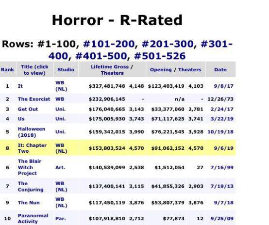 第一位就是《小丑回魂》,它打破了《驱魔人》保持了44年的R级恐怖片票房纪录,成为影史第一(《小丑回魂2》排在第6位)。华纳公司仅投资了3500万美元,对于《小丑回魂》的票房表现也没有过多期待。不仅如此,华纳还把《小丑回魂》和《安娜贝尔2》都放在了暑期档,前者是9月8号上映,后者是8月11号上映。谁也没有想到,上映首周《小丑回魂》就是票房冠军,最终全球票房超过6亿美元,空降美国2017年年度票房第五位。这也是为什么《小丑回魂2》会找来詹姆斯·麦卡沃伊和杰西卡·查斯坦这样的一线演员坐镇。抛开其他先不谈,《小丑回魂》实际上借了前一年开播的《怪奇物语》的东风,甚至《小丑回魂》与《怪奇物语》还共享了同一个小演员菲恩·伍法德。