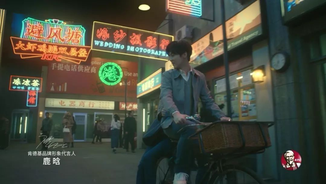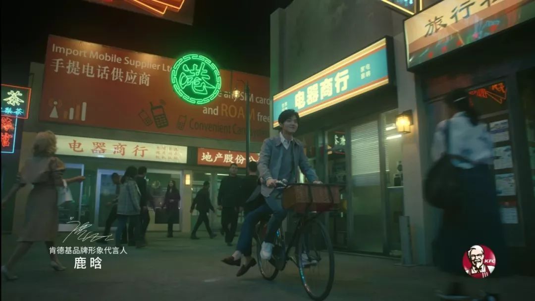 在场景布置上,广告用独具香港特色的霓虹灯招牌,为观众复制了一个港风十足的香港街头。
