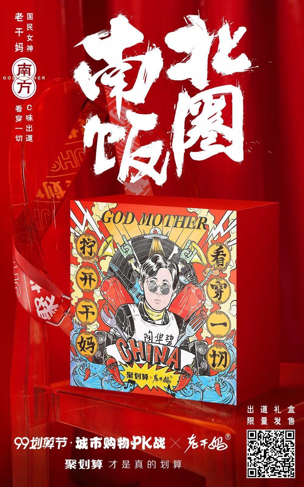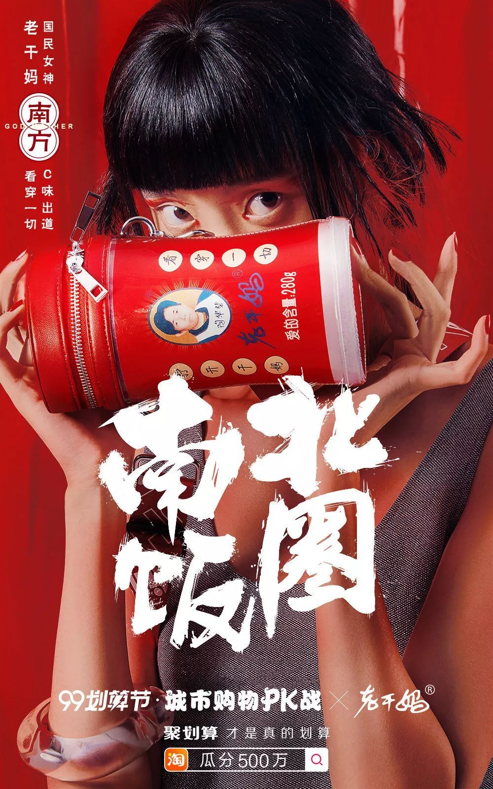 除了拍摄广告,老干妈联合聚划算发起#南北饭圈#的话题,让国民女神老干妈代表南队发声。