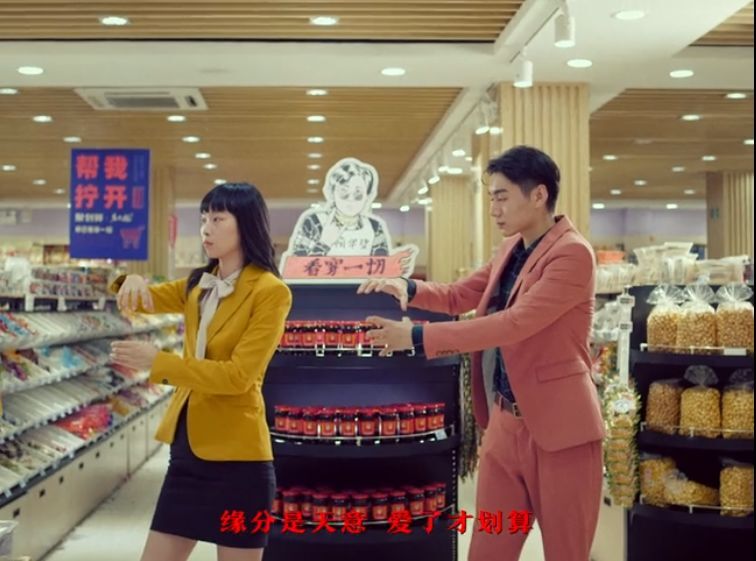 此外,广告还加入狗血的情侣故事,因为都喜欢老干妈最后组成CP。