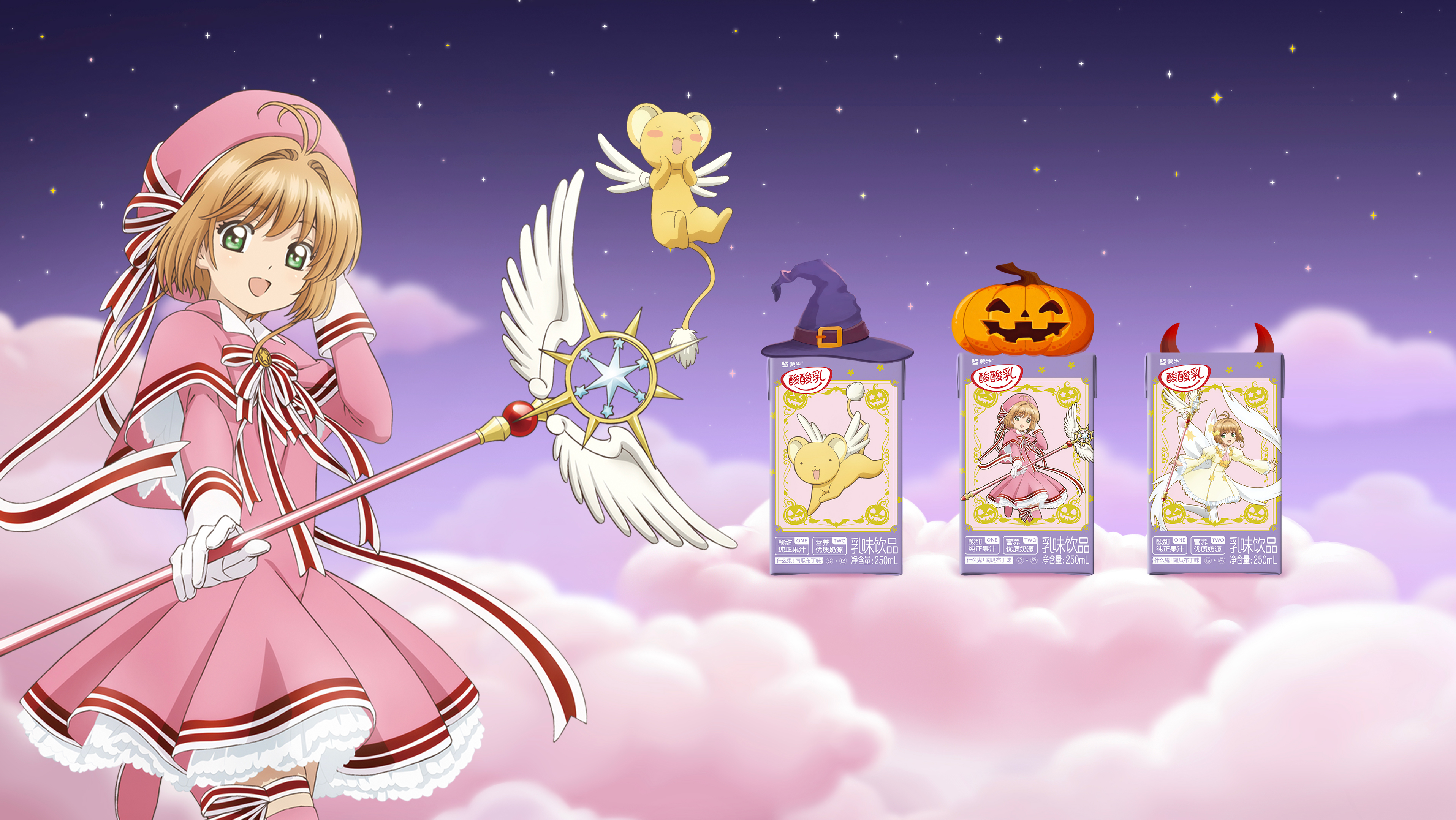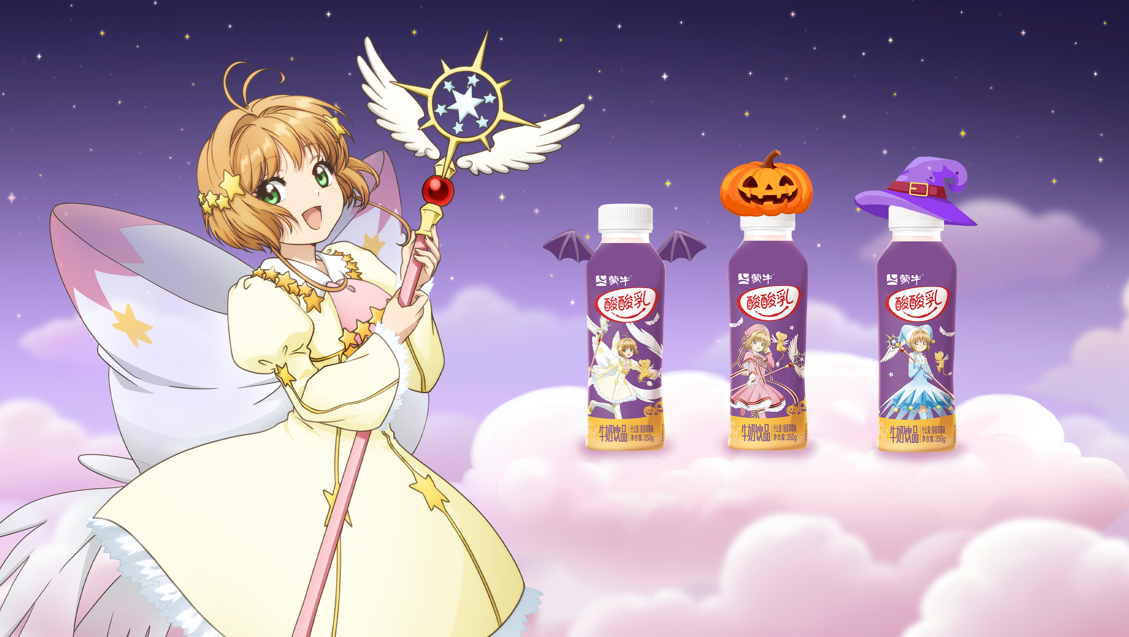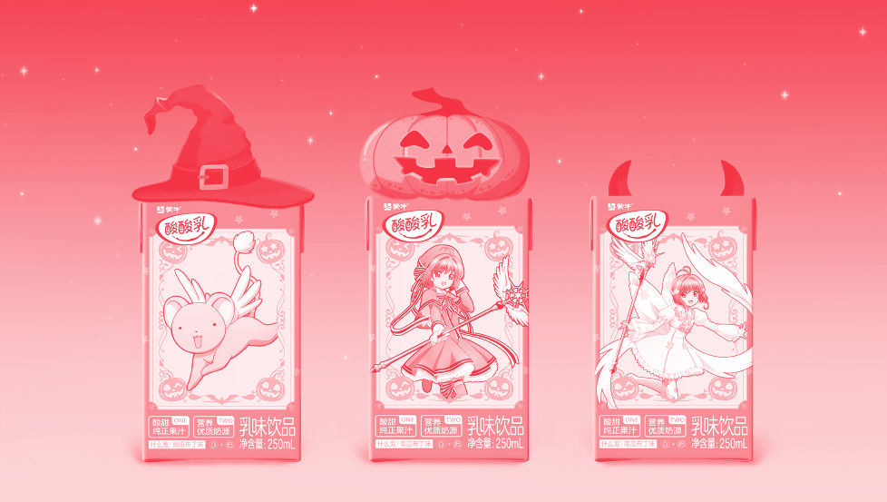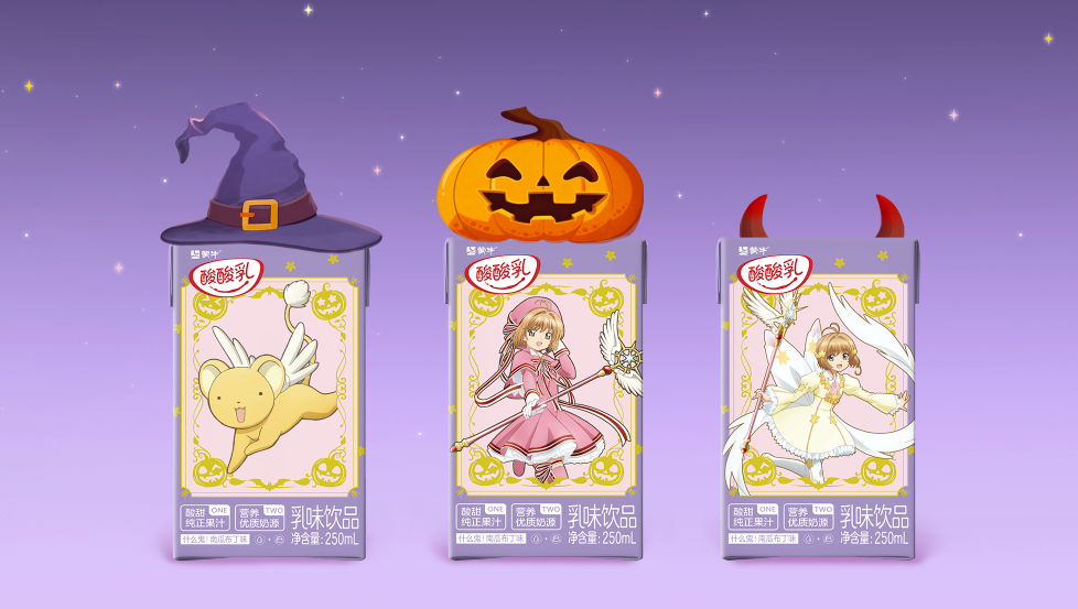 The mysterious shop door slowly opens, and the Halloween atmosphere is instantly full - the limited packaging of Mengniu Sour Sour Milk × "ic Card Girl Sakura" shines on the shelf. The girl picked up a box, and the magic wand on the box suddenly lit up, and in a moment she was swept Sakura's fantasy world: the magic circle shines, the stars flow, and the dream is brilliant. In a moment, she returned to reality, already dressed in a Sak theme Cosplay, holding a limited milk box and gathering with friends.