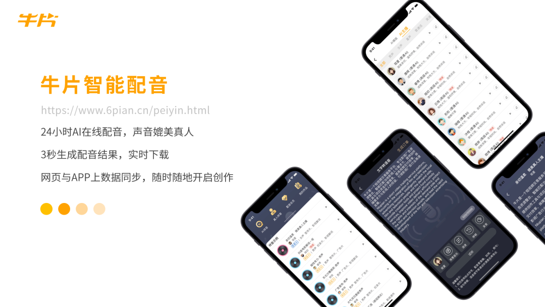 牛片目前收录AI配音主播181位,真人配音老师208位,每天产生配音条数超过4000,真人配音按分钟计价,配音咨询合作率超过50%。抖音AI配音相关话题,牛片AI配音被推荐播放次数超过3亿次!