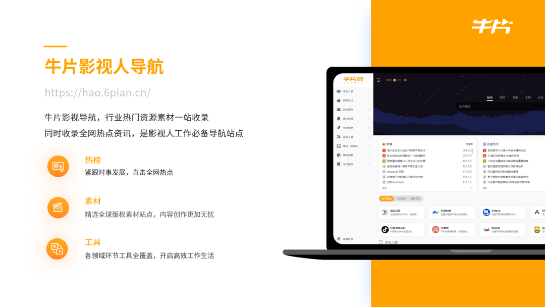 行业热门资源素材一网打尽,牛片影视导航收录了全网热点资讯,精选了全球版权素材站点,是影视人工作必备导航站点。