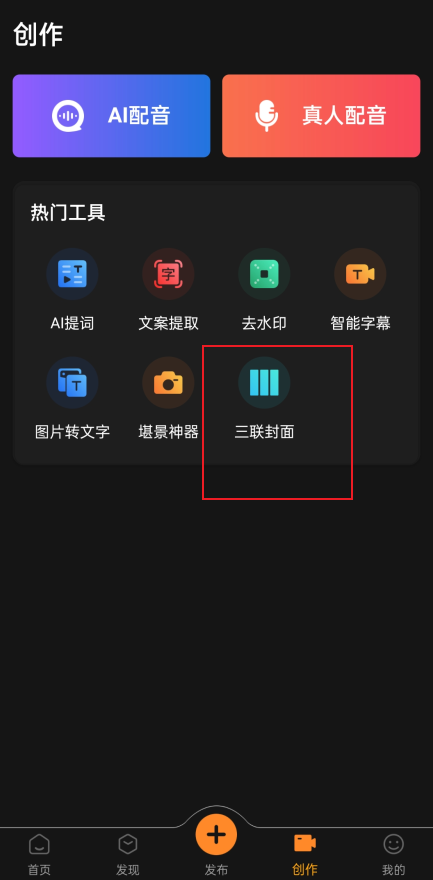打开牛片app后,点击下面的“创作”,就可以看见“三联封面”的入口了: