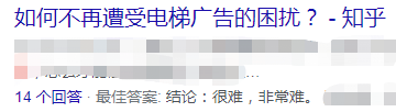 在声讨电梯广告这件事上面,受害者已经声嘶力竭,能骂的能讽刺的能抵制的都轮过一遍。以电梯广告为关键词搜索,一般只能出来两种结果,一种是激情辱骂,另一种就是分销商和agency的软文,分析为什么电梯广告才是未来广告界永远的神。