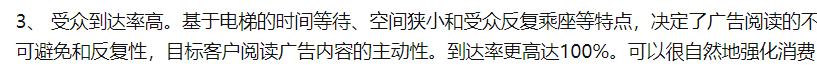 这句话来自某个电梯广告的分销商写给潜在广告主的推广里,btw人家现在不叫自己电梯广告,人家叫自己梯媒,是可以和纸媒起码在名字上可以平起平坐的分类。