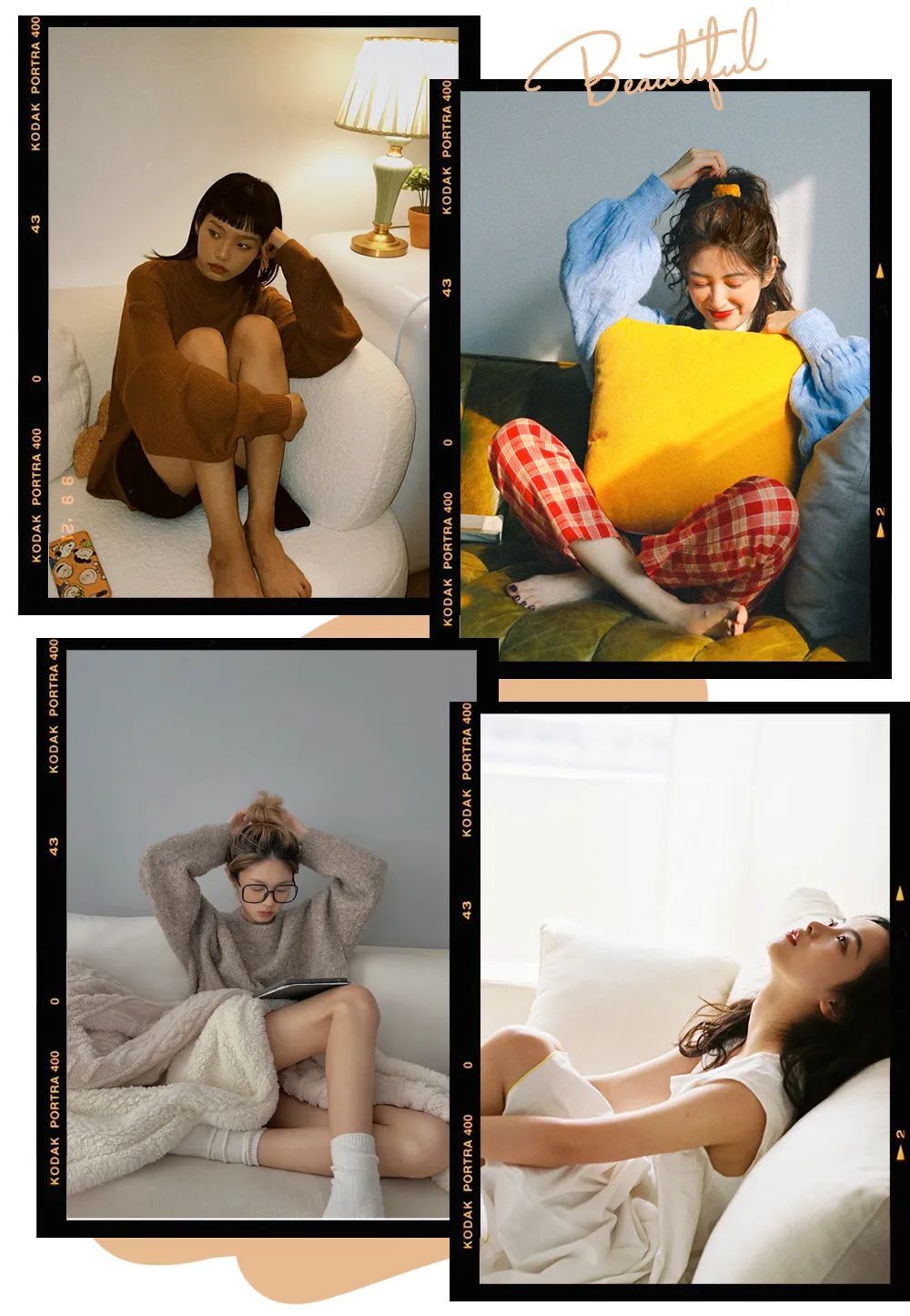 随便套一件好看的家居服窝在沙发上,不用刻意的看镜头,慵懒惬意的做着事情就很自然~