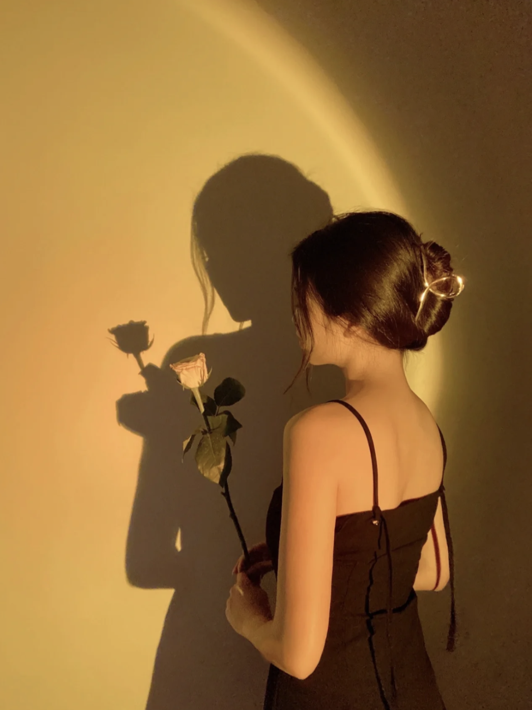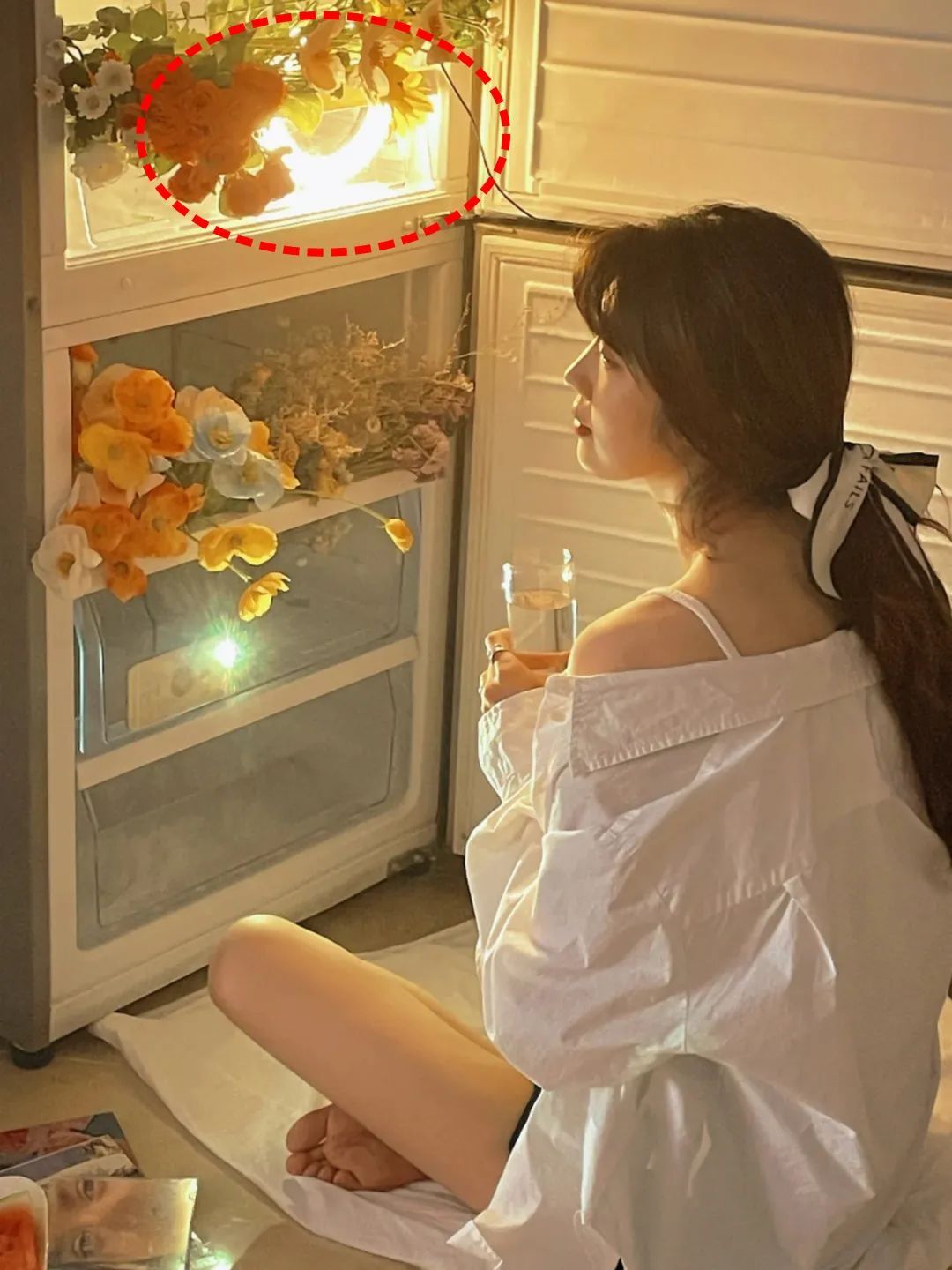 如果灯光还是不够,放一个暖光的手电筒在花中间就好,增添氛围感一把好手!