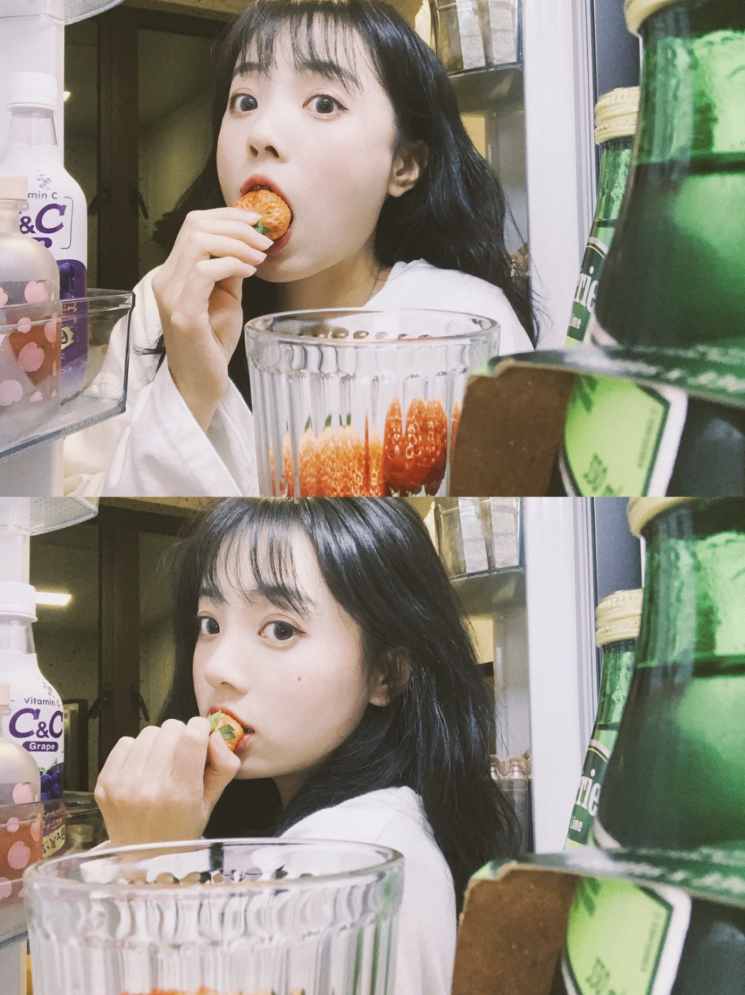 把手机放在冰箱里自拍,这种一打开冰箱就发现有人盯着你的感觉,不要太真实!(贪吃鬼被抓包)