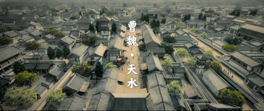剧中还有一处体现审美的,就是它的建筑概念,这应该受益于路阳拍《刺杀小说家》的积累。除了街道的宽窄体现了古今之别,具体的建筑风格也体现了魏蜀之别——曹魏的天水郡,给人的印象整齐宽大;蜀汉的南郑郡,则由于地处山坳,显得错落险峻。两相对比,遂生出早期三国游戏的沉浸感。