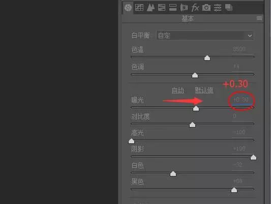 六、片子整体偏暗,将“曝光”滑块向右拉动,增加整体曝光度。