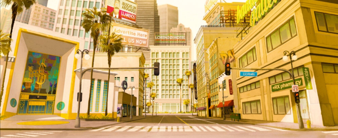 这部电影里展现了洛杉矶地区的 10 几个地标建筑作为设计参考,包括延伸到洛杉矶河上的第六街高架桥、洛杉矶市中心、中城、奇迹一英里、回声公园/银湖、帕萨迪纳/高地公园、极乐公园、马里布、圣莫尼卡、查茨沃斯和世纪城。