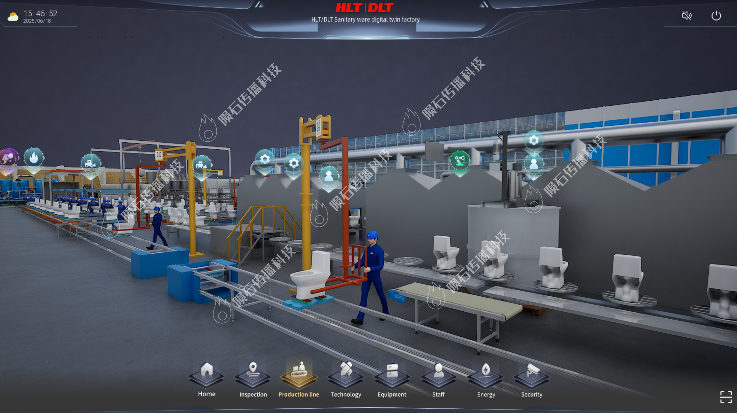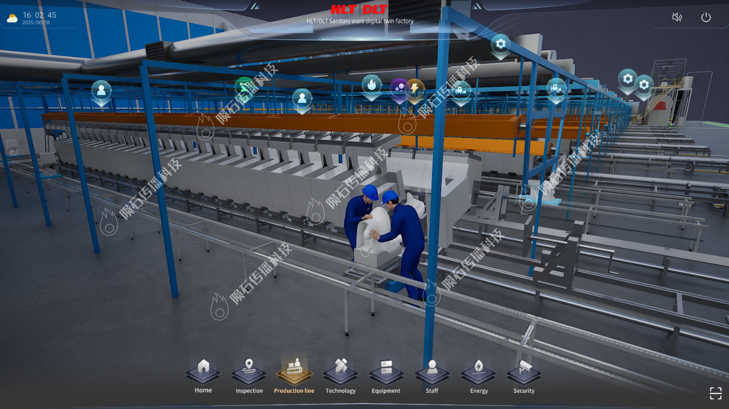 陨石3D卫浴数字孪生工厂,是通向未来的引领之路。首页的整线及整厂监控动态数据呈现,是这条路上的方向指引,为生产发展指明方向。巡检功能的自动巡游,如同路上的智能路标,提示生产过程中的情况。
