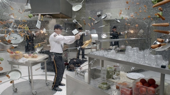 在电影X 战警系列也运用了子弹时间,核心体现在快银角色上,《逆转未来》厨房营救、《天启》学院救援等场景中,时间近乎凝固,子弹、碎片悬浮,快银在静止环境中行动。