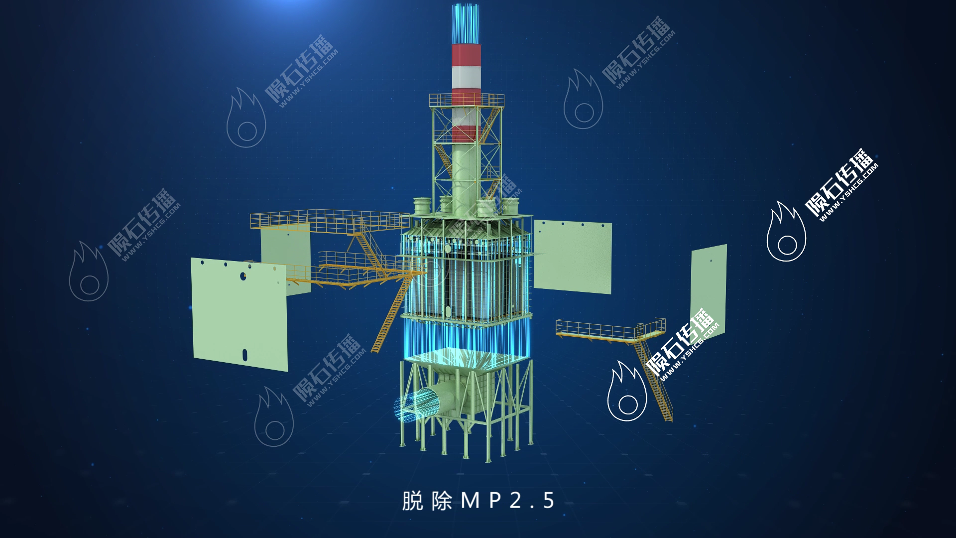 此三维动画展示了湿电除尘工艺全流程脱硫后含尘酸雾烟气经均布系统进入设备,高压电场使阴极线与玻璃钢阳极管间形成电场,污染物荷电后被阳极吸附,随液膜自流至集水槽回输脱硫系统。阳极管靠液膜自清洁,少量粘附粉尘通过间断喷淋清除,全程耗水低、无污水,高效脱除污染物,实现烟气深度净化。如图所示