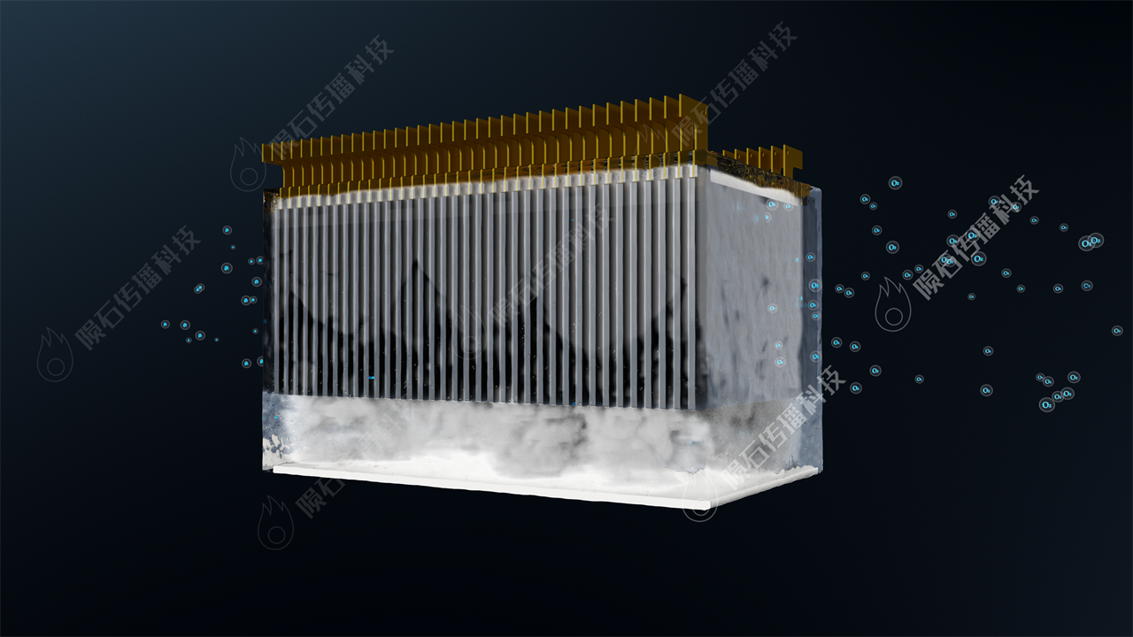 此三维动画展示了铝空电池电站由电池模组、工辅业系统、热管理系统及智慧管理系统组成,以铝为负极、氧为正极,碱性或中性溶液为电解质,发电效率高且副产品纳米氧化铝用途广泛。其已攻克五大核心技术,形成产业化格局,可应用于动力电源、储能、应急备用电源等多领域。如图所示
