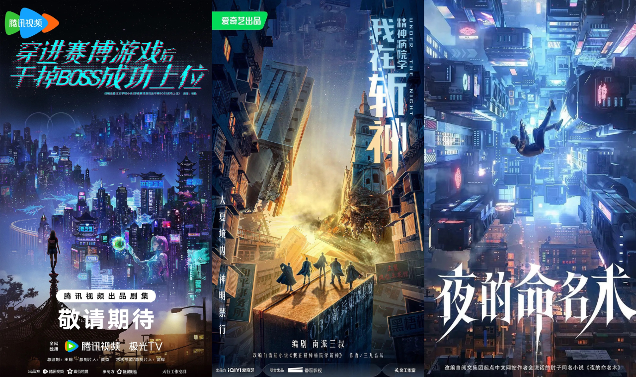 此外,以“第四天灾”网游为背景,融合赛博朋克、克苏鲁等元素的《穿进赛博游戏后干掉boss成功上位》;以都市异能为基底,融合神明复苏、高武降临、末世生存的《我在精神病院学斩神》;以及主角在“表世界”和“里世界”之间来回穿越的《夜的命名术》等高概念剧集,虽尚未确定主创班底,但都已出现在各大视频平台的IP储备库中,蓄势待发。