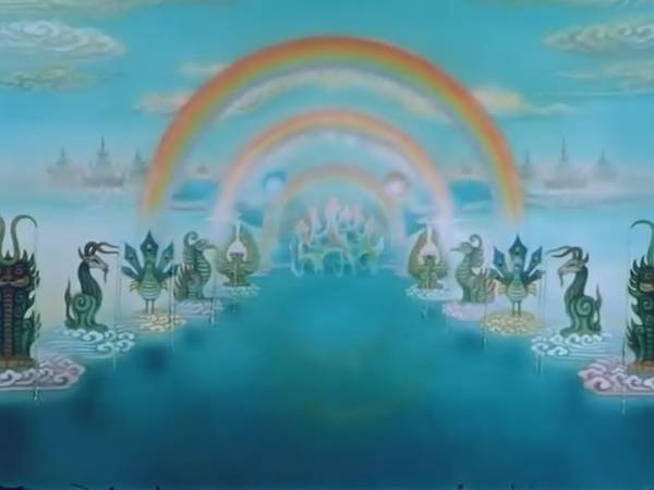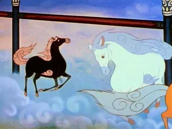 1981 年的《九色鹿》,改编自佛教故事的《鹿王本生》。故事的核心是九色鹿的牺牲精神和佛教的善恶报应论,表现形式则取材于敦煌壁画。