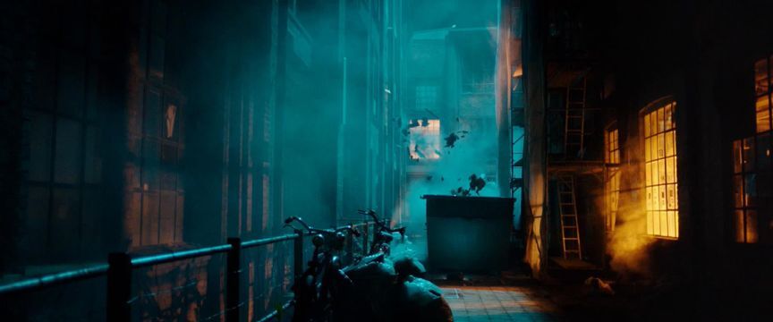比如这张剧照,是我和国外团队合作的项目做的夜景拍摄风格,大家注意一下色彩的结构。在拍摄之前,我和国外团队沟通的第一件事,就是影像风格。在这次拍摄中,我构建了全新的,来自于西方印象派系统的色彩体系。怎样在电影里运用这个系统的色彩体系?最终需要落实到色彩的设计——色彩的实现、照明、美术、调色……各个部门如何操做。当这些都阐述得非常清楚了,观念已经得到大家充分认识的时候,国外团队再推荐一位最适合你想要的风格的摄影师和灯光师,这时候整部影片的构架就建立完毕了。