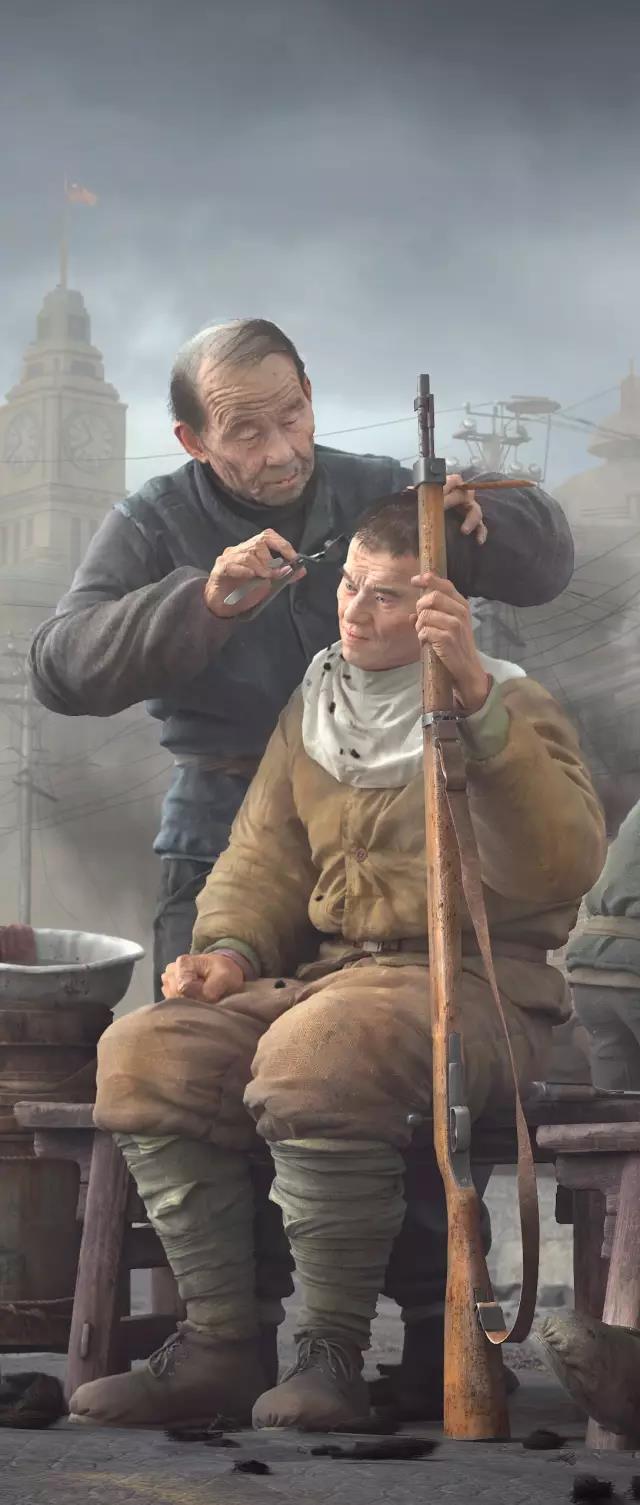 导言:嗨!大家好,我叫张知己,是一名小小的CG工作者,一直以来都想制作一个关于战争题材的作品,后来无意间翻阅了一本关于内战的小册子,因此就诞生了《Fratricidalstrifeidiom》这幅作品。该作品讲述了1947年国民党政府在大陆作垂死挣扎,于是大规模的抓取男丁服兵役,画面描绘了壮丁们服兵役前的剃头场景。战争是残酷的,它让多少家庭支离破碎,多少人生就此而终止,因此我们应该好好的珍惜和平年代,珍惜现在的每一天!