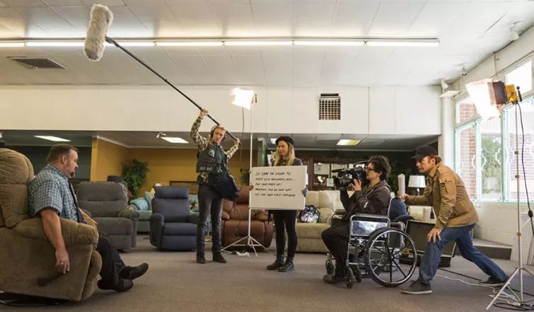 最后,一个风险较高的轮椅拍摄技巧是让重力和倾斜控制你的镜头运动。这些机会可能不会经常出现,但如果你需要模拟一个POV角色或跟随一个人物动作,在镜头滑动或下滑时立即增加速,在操控一个自由落体镜头运动中使用轮椅车是个大胆的选择(一定要有足够的人手来帮助引导和捕捉镜头)。