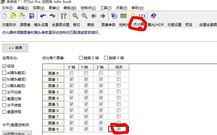 步骤四:点选优化器选项,钩选视点矫正为编号为9的地面照片
