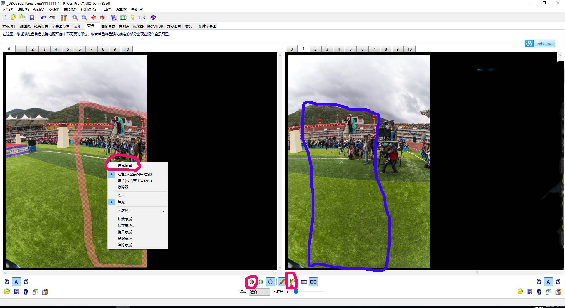 使用全景云台拍摄全景,在PTGUI进行全景照片合成,通过相邻照片之间使用蒙版功能,可以让照片处于相同位置中的物体不在模糊,或者擦出不需要的物体