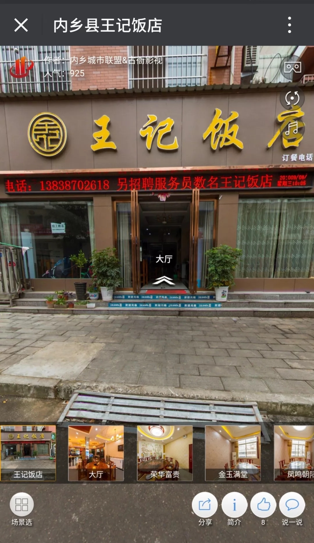 餐饮店可以通过VR全景帮助食客720度全方位的浏览餐厅的实际情况和用餐环境,查看任意一款美食的详情及价格,并可以进行在线预订、在线支付等操作,可以在网络中架起用户和商家之间的信任桥梁,有效提升交易成功率,为商家获取更高收益,让传统的点餐体验更加数字化、智能化及人性化。