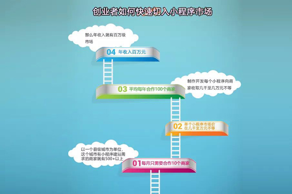 “一年的代理费也才2万,在我们当地做个功能多点的小程序可以卖到18000元,一个小程序或许就能赚回代理费用”李总说道,“这就是商机!”