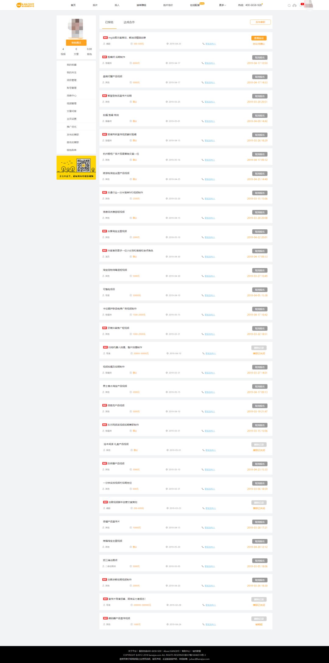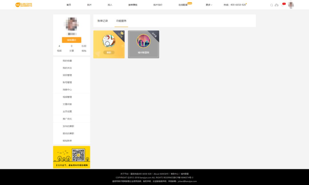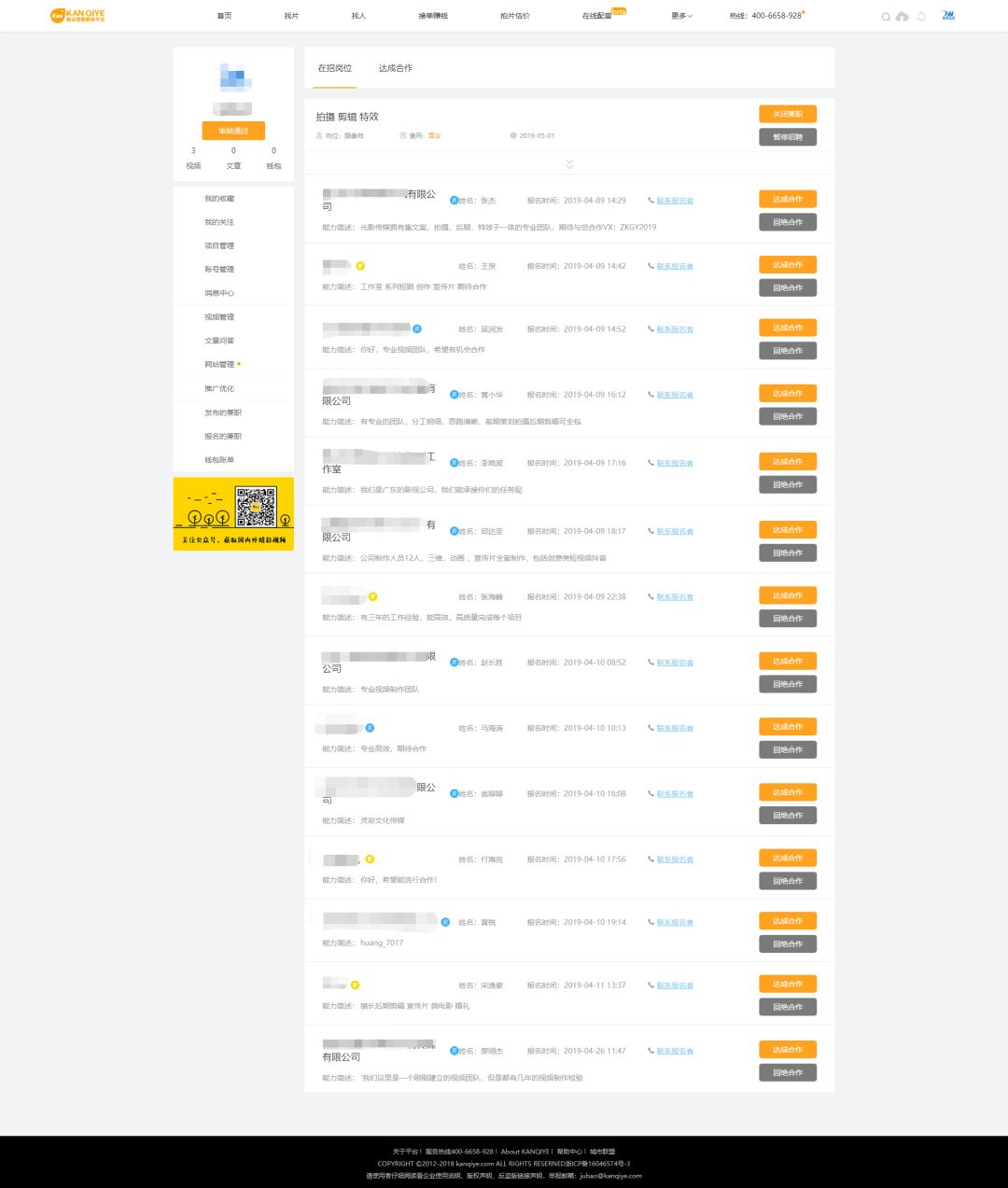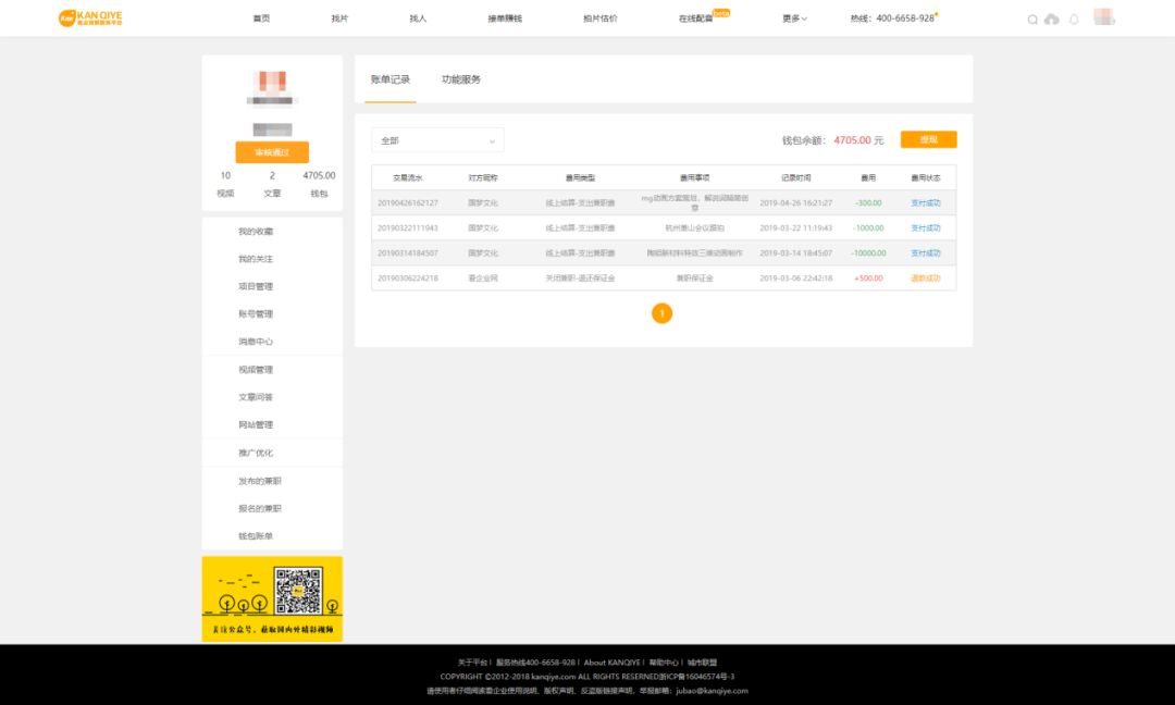 “接单赚钱”,帮助影视人达成交易,用技能赚钱,我们也可以从字面上给它两个定义:兼职、外包。