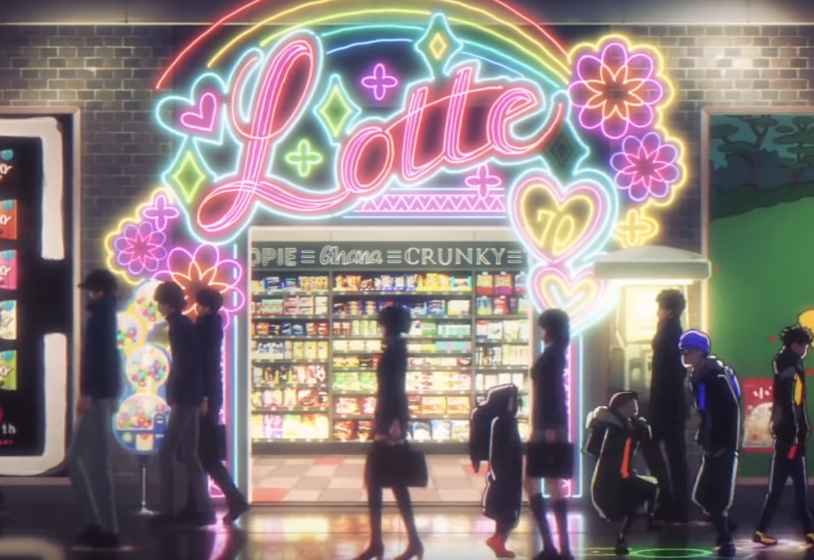 日本动画制作公司ボンズ(BONES)为乐天70周年做了一部动画广告。用蒙太奇的手法表现了,男女主人公因为乐天的一款巧克力产品而相遇的青春恋爱故事。