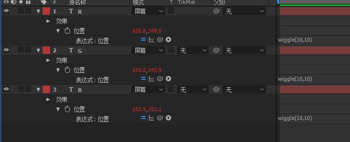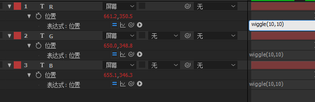 接下来要为那三个图层添加表达式“wiggle()”
