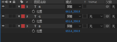 设置好后将他们的图层混合模式改为“屏幕”,可以看到三个重叠在一起的字已经变成白色了