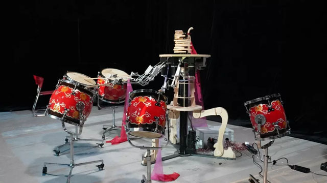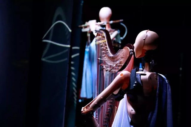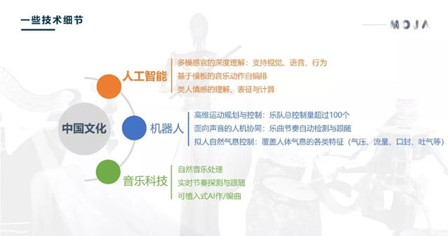 清华团队打造的全球首支中国风机器人乐队:墨甲,融合了:智能交互技术、雕塑艺术、音乐艺术以及中国传统文化元素,从姿态优雅的机器人形象到古色古香的舞台设计,都蕴含着丰富的中国风元素。