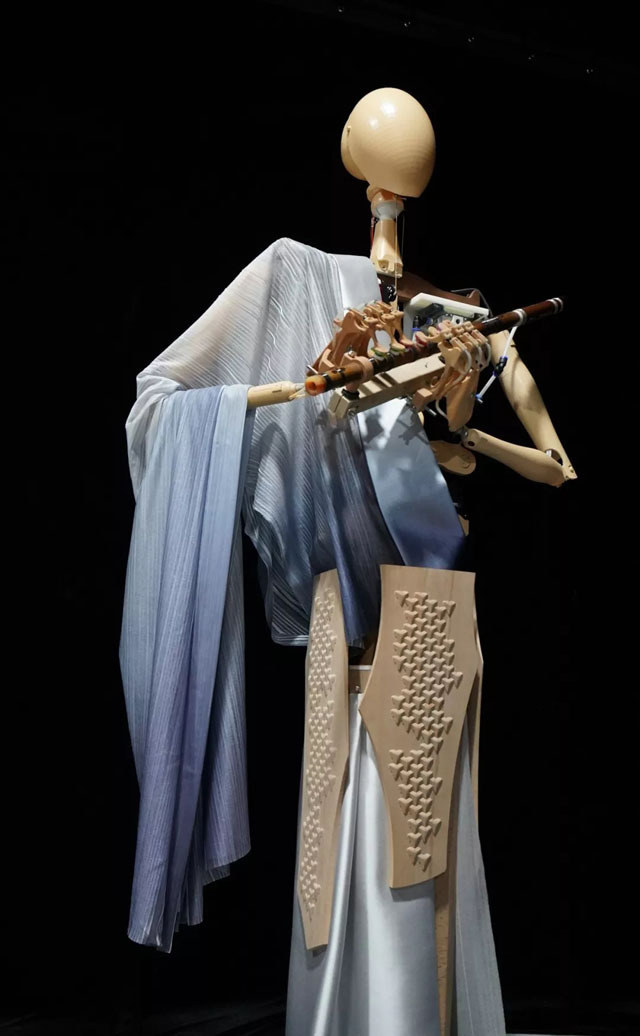 墨甲机器人“玉衡”以清雅的笛声传递着如诗的中国山水和悠悠的古韵情怀。
