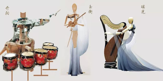 机器人“开阳”机器人“玉衡”和机器人“瑶光”,三位极具特色的机器人“乐师”的名字来源于北斗七星中的三颗星,分别演奏排鼓、竹笛、箜篌三种极具中国特色的传统民族乐器。通过打击、吹奏、拨弦三种不同的演奏技法,为观众带来了一场独具特色的试听演出。