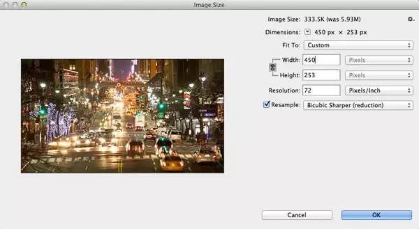 您可以减少从图像尺寸从图像菜单或存储为Web对话框的时候。我喜欢从最初图像大小对话框调节尺寸,因为它可以节省大量的加载时间,当你打开存储为Web对话框。您的视频层将不得不变成一个智能对象,如果你调整图像大小,但你不必担心,它不会影响我们的工作流程。