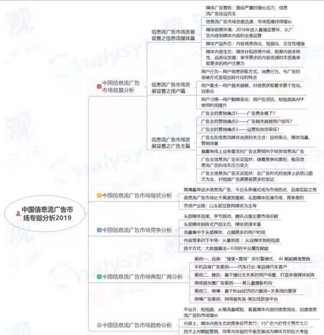 下图是《中国信息流广告环境趋向专题说明2019》的完备版头脑导图。