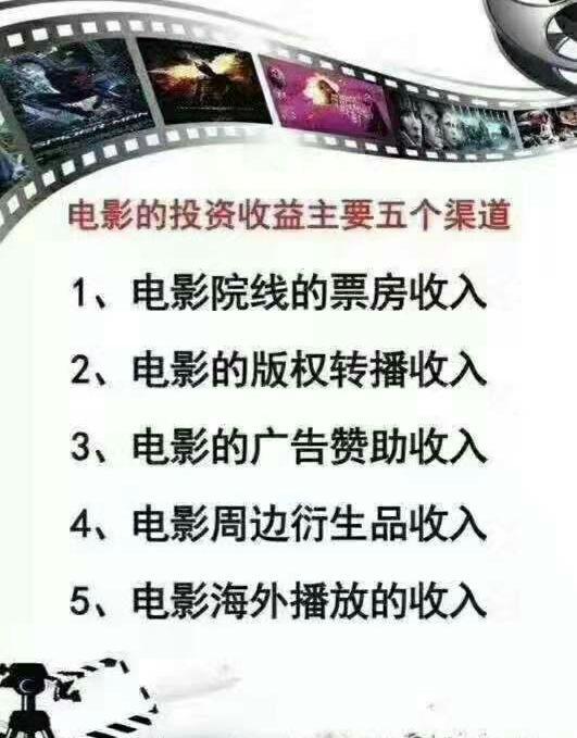 6、等待电影上映分账,分账收益包括:票房,电视,网络,广告植入,元素等收益!