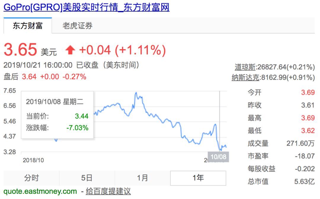 这个消息一出,直接导致GoPro公司股价盘后暴跌超过20%,盘后价为4.28美元,与巅峰时期每股接近100美刀相比,可谓一泻千里。