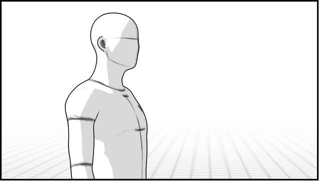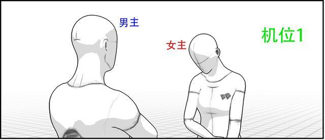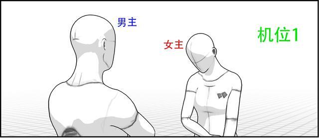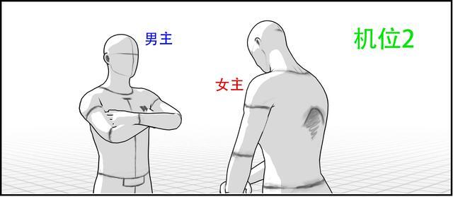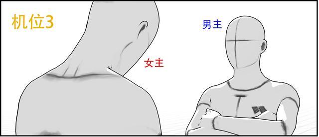而如果拍摄男主的第2台机位越过了轴线,到了顶视图中的机位3的位置,那么剪辑出来的镜头就是这样的: