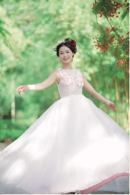 可能有些人认为,拍摄花仙子的人像,白色衣服是***选择。其实,只要是高明度的色彩,如青、洋红等色彩的衣物都是可以的,当然,纯色的连衣裙***。具体拍摄时,还应在人物的头发或衣物上点缀一些色彩丰富的小型饰品或挂件,从而让照片中的人物更加有活力。