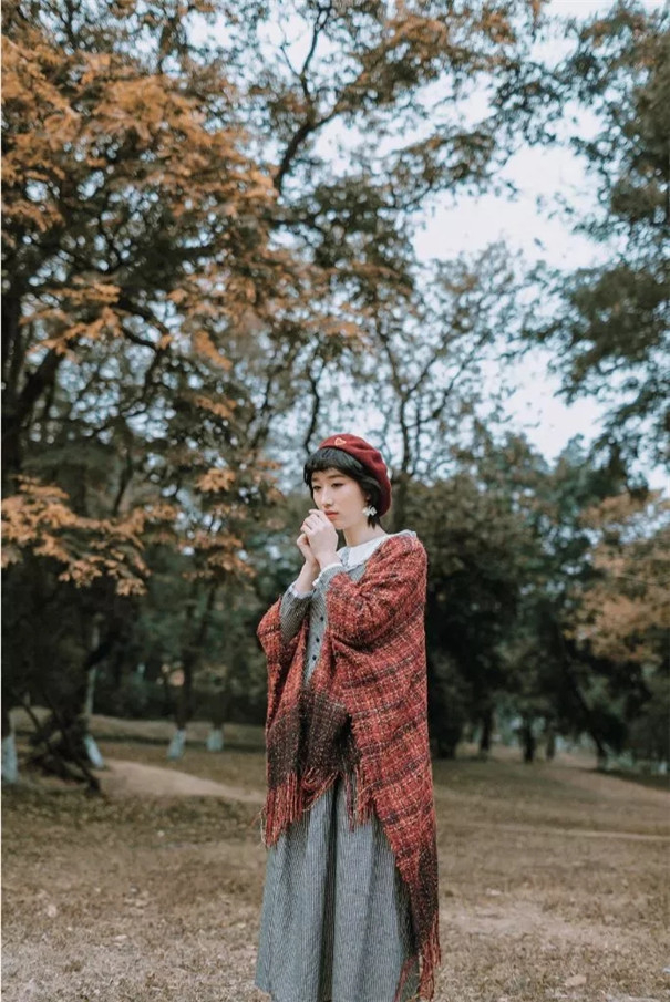 暗红与灰色进行搭配,画面变得非常沉稳,让照片中的人物有一种淡淡的知性美。