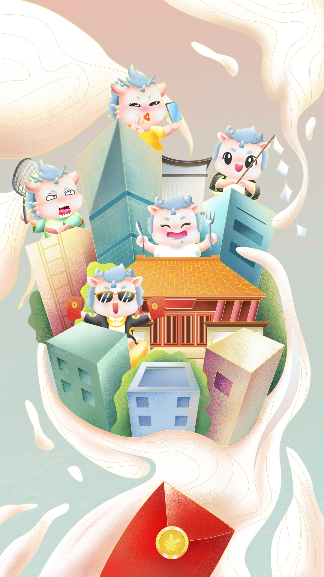 华灯初上,人间恰逢年末岁尾,儒麟嬉戏于琼楼之间,化作五型之身,派送“五福之气”,世人皆觅其踪迹。有传得见者可得偿所愿,或登青云、或得大礼。五福临门,把福带回家!