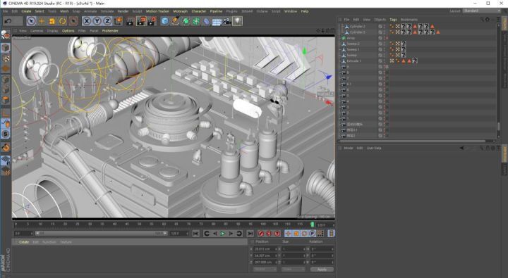 确定草图后,可以在 C4D 完成几大视觉要素的建模。这些模型就像是你创作的工具一样,会让后面搭建场景的环节得心应手。