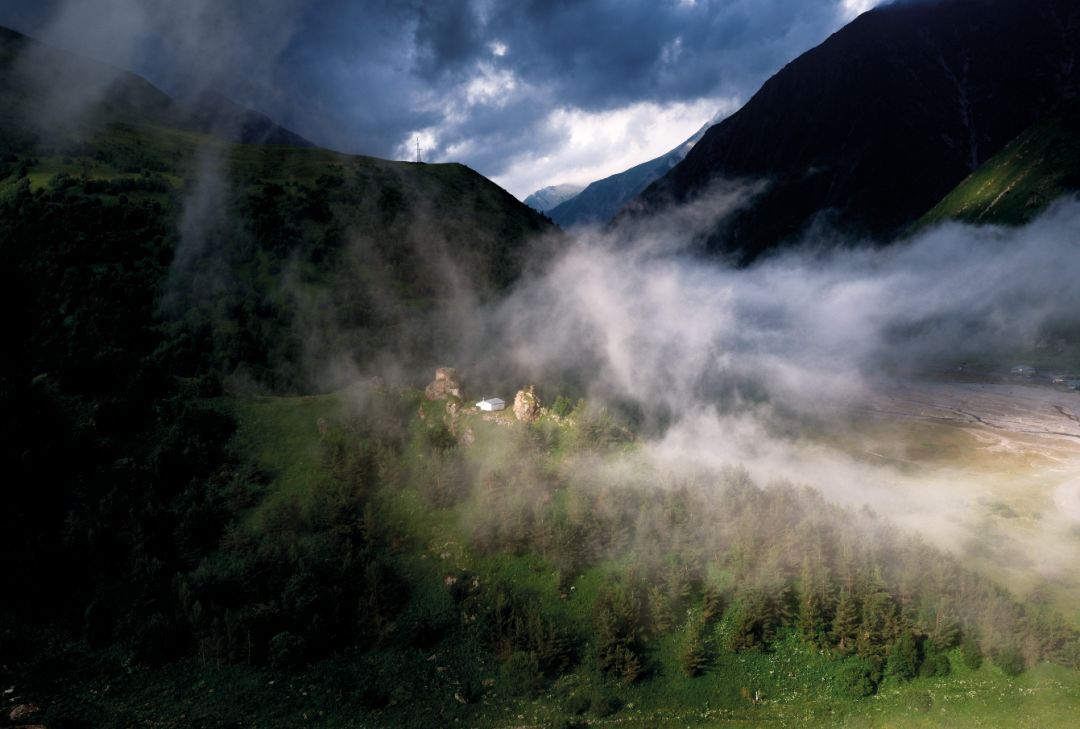 《山间教堂 》格鲁吉亚,乌哈盖(Ukhati)无人机机型:大疆“悟”Inspire 2 相机:FC6250 镜头:30mm(等效 35mm 焦距),光圈:F4 /快门速度:1/800 秒 /感光度:100