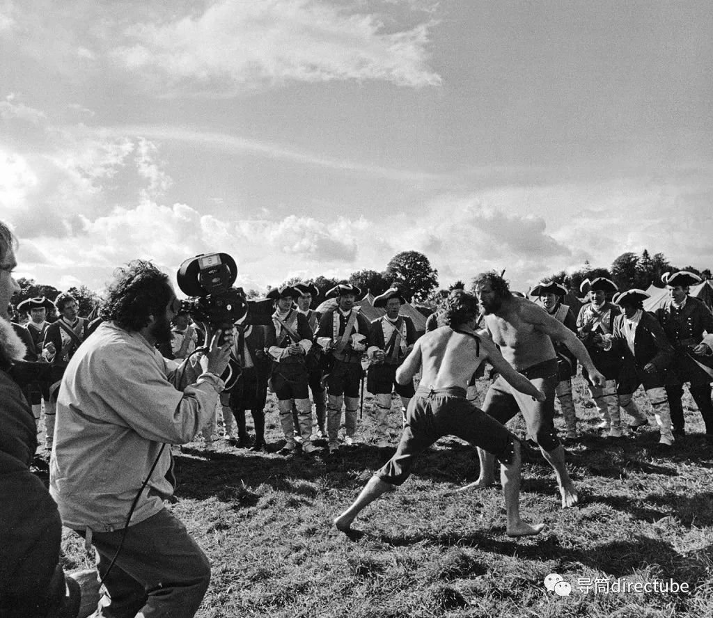 Photographed by Bo-Erik Gyberg一切都是空虚的。这就是斯坦利·库布里克(Stanley Kubrick) *在法国比在其他地方更受追捧的原因, 他就表达了这样的道德观(《巴里·林登》[Barry Lyndon, 1975] 里的平民) :暴发户(parvenue) 的生命力本身就是过剩。试图改变阶级是疯狂的。因此,在影片中, 通过向后移动镜头(travelling arrière) 展现的狂妄、华而不实的画面中,了无生气的小男人不断地被送回漂亮的、毫无变化的山冈、花园和城堡。但实际上什么事也没发生过。「*《巴里·林登》(Barry Lyndon, 1975) 中的平民和底层。——原注」导演斯坦利·库布里克在《巴里·林登》 Barry Lyndon(1975)片场手持拍摄由此可以理解, 古典资产阶级在运动(mouvement) 方面, 除了腐朽的原则(principe de décomposition) , 已经没有什么可以展示。当一种类型(在古典资产阶级中)受到欢迎并获得发展,它的流行就不仅是为了演绎法国喜剧的有限功能,更多的是渗透着对旧法兰西第三共和国的狭隘怀旧。这类电影中出现的人物,诸如酒馆老板、门房、街道清洁工、酒鬼、小秘书、可笑的度假者、小干部(petits cadres) 、狡猾的农民、大嗓门的教师、活泼的插画师、红酒商人和加油站服务员等,是为了让人们联想到,娱乐戏院中由混乱的通奸、寻宝游戏、荒谬怪诞的谋杀、诙谐的俏皮话所组成的乏味歌剧。这种落后的、低劣的娱乐方式,这种卓越的“大众”艺术(art de masse) , 与虚无主义的见解完美契合, 为势利小人提供了某种致命的深刻性。莉莉安娜·卡瓦尼《午夜守门人》The Night Porter (1974)新兴资产阶级认为自己处于上升阶段,把自己塑造成人类自然美德的继承人和立法者。它大胆地宣称我们关注的是农民、工人和抵抗者,基本上就是阶级斗争。我们是这群庞大的普通劳动人民,一旦站起来反抗,就会让少数疯狂的垄断者走向没落。